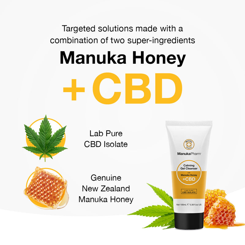 This gentle daily CBD and Manuka honey cleanser removes make-up and impurities and reduces sebum production without over-drying blemish prone skin.